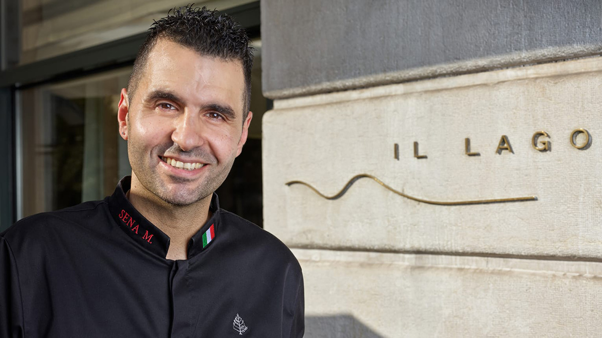 Sena viajó desde Londres hasta Corea para aprender sobre diferentes culturas; después aterrizó en Suiza. Su mirada y su afán por exaltar cada uno de sus platos con sabores exquisitos y colores vibrantes lo convirtieron en un referente en la ciudad al poco tiempo de que se hiciera cargo de la cocina de Il Lago. Su talento de hacer coexistir en un plato “tanto elegancia como sabores únicos” fue destacado en los medios locales y el boca a boca hizo el resto. Para Massimiliano, la estética es tan importante como los sabores, por eso cada una de sus propuestas es presentada con estilo. Minimalistas y modernas, las piezas que llegan a las mesas estimulan los sentidos. Ya sea por sus tonos o por la combinación de diferentes materias primas, no hay forma de que las delicatessen de la carta de Il Lago —que mezcla los sabores de la costa amalfitana con algunos detalles de la gastronomía suiza— no generen curiosidad en los comensales.